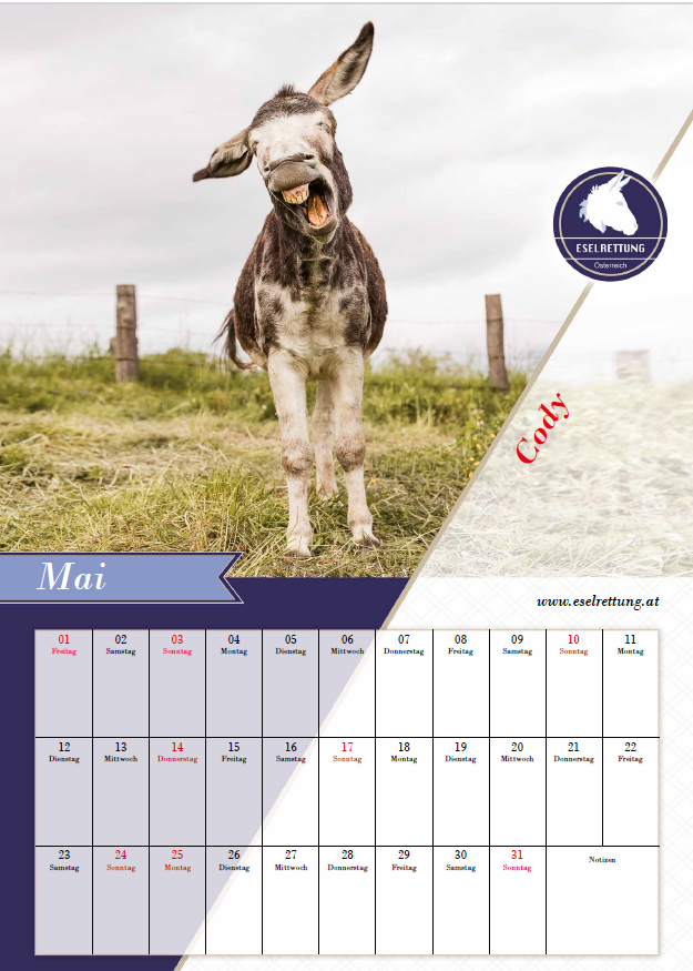 Wer die Eselrettung Österreich mit dem Kauf unseres Kalenders unterstützen möchte, bitte einfach den gewünschten Kalender in unserem neuen Onlineshop bestellen.
